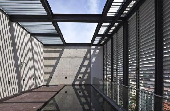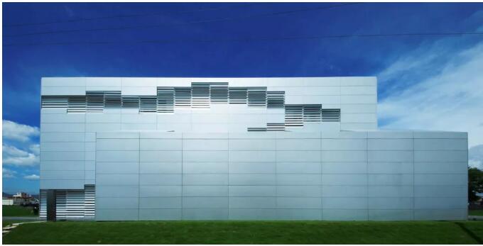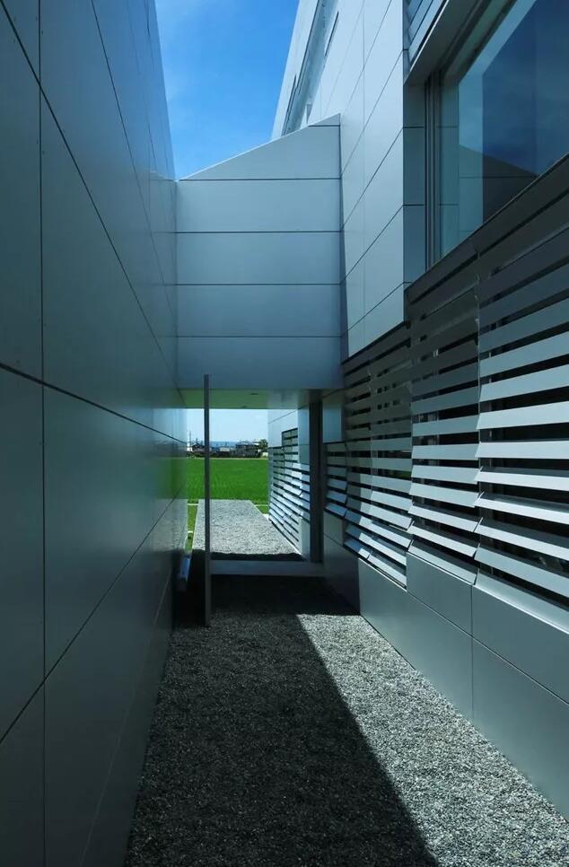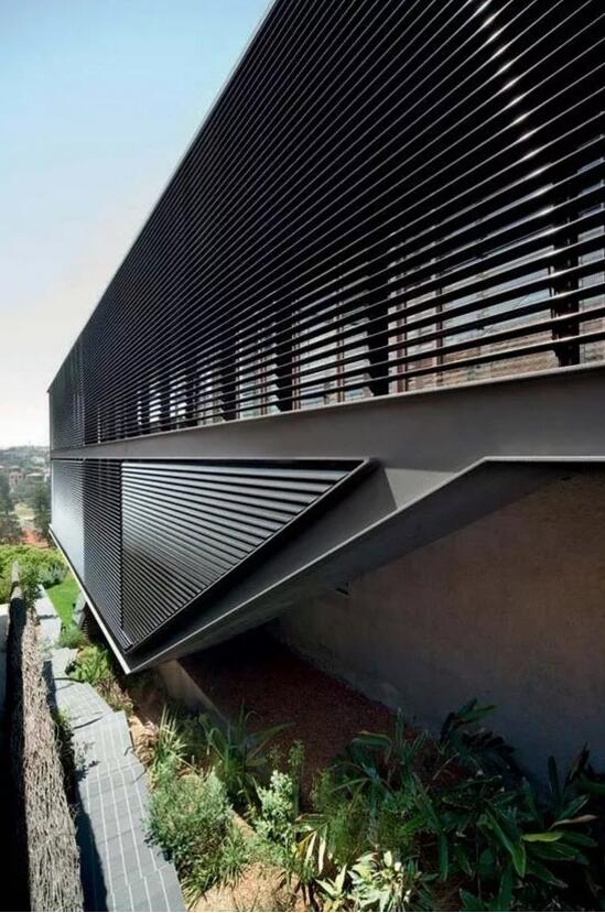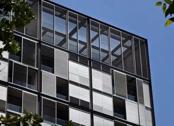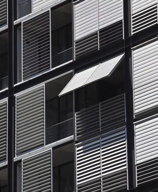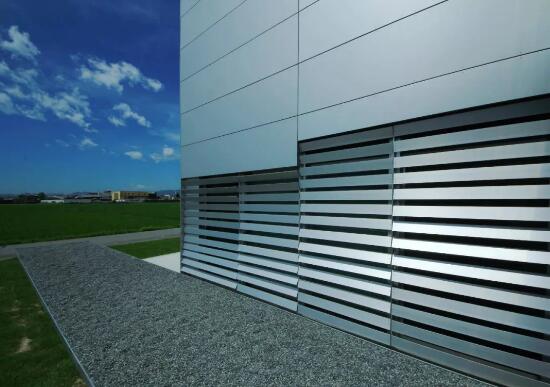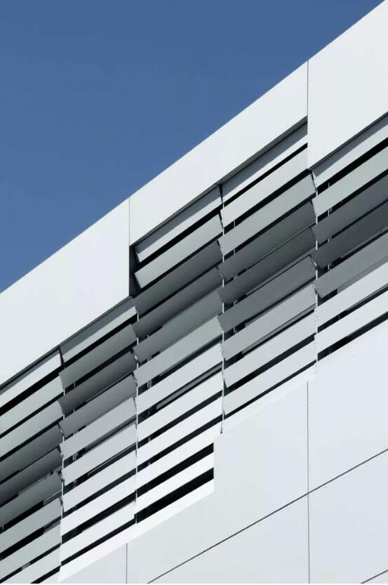 但是因?yàn)殇X制百葉窗突出的耐候性,因此更適用于室外遮陽。在日本就有一座用鋁板做外遮陽的建筑。為減少夏季輻射熱量,該建筑的兩側(cè)沒有設(shè)計(jì)開口。