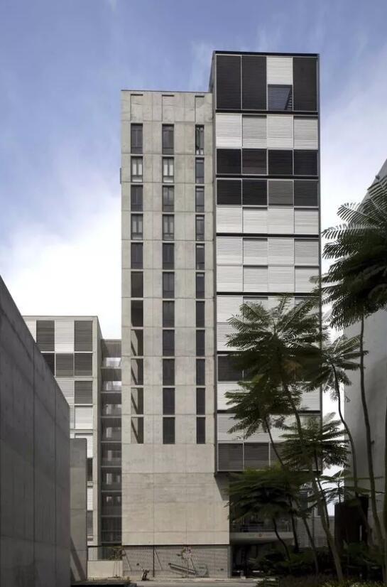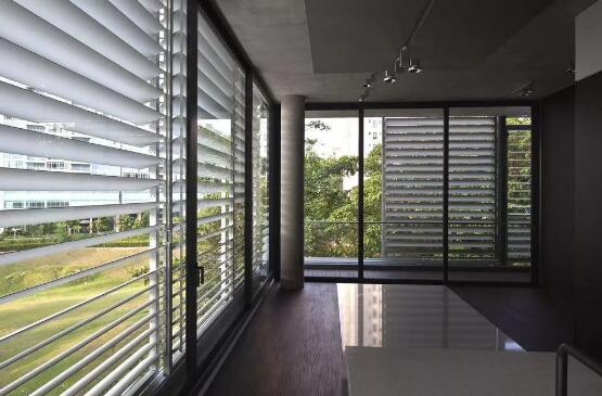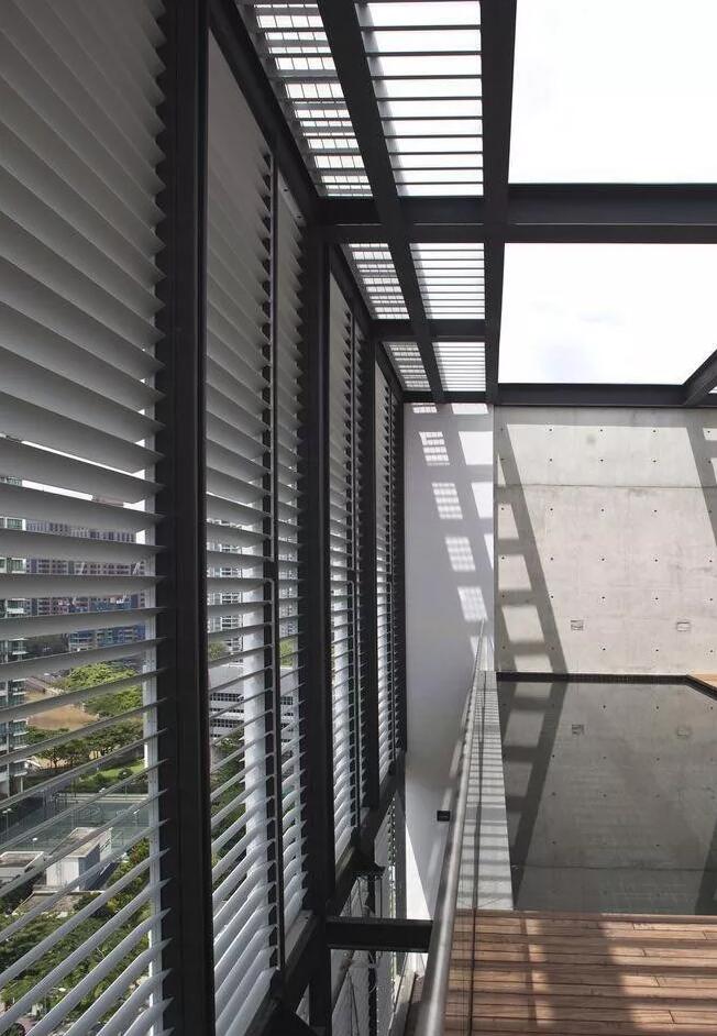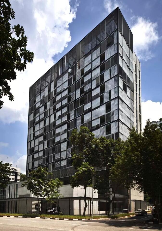 相較于日本這座充滿設(shè)計(jì)風(fēng)格的百葉窗建筑,在新加坡有一座“沒有風(fēng)格”的公寓樓也同樣是利用鋁百葉窗來遮陽的。