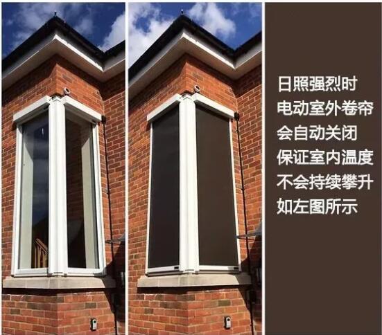 電動(dòng)戶外卷簾配有定時(shí)器,這意味著它們可以在太陽(yáng)光不能忍受的時(shí)候自動(dòng)關(guān)閉。