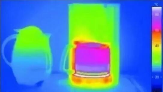 右側(cè)的壺表面顏色較深,表示表面溫度高,散發(fā)出的熱量多,如要保溫還需要主動(dòng)加熱,是“主動(dòng)式的”。